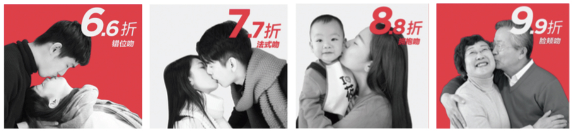 한 테이블에 여섯 식구가 앉아 있다. 여자 아이가 할머니 볼에 뽀뽀하고 할머니는 할아버지에게 뽀뽀한다. 할아버지는 남자 아이에게 뽀뽀하고 남자 아이는 아빠와 엄마에게 뽀뽀한다. 젊은 부부도 서로 입술을 맞대는 뽀뽀를 한다.