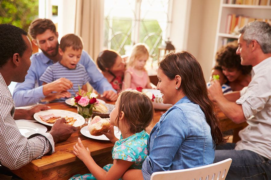 한 테이블에 여섯 식구가 앉아 있다. 여자 아이가 할머니 볼에 뽀뽀하고 할머니는 할아버지에게 뽀뽀한다. 할아버지는 남자 아이에게 뽀뽀하고 남자 아이는 아빠와 엄마에게 뽀뽀한다. 젊은 부부도 서로 입술을 맞대는 뽀뽀를 한다.