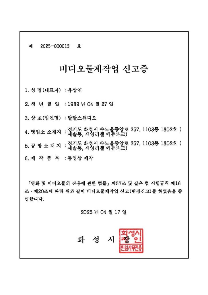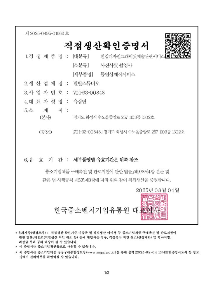 탈탈 스튜디오에 사용되는 모든 프로젝트는 라이센스를 확보하여 사용합니다. 영상 납품시 라이센스 내역도 함께 증빙하여 저작권 정책에서 자유로운 콘텐츠를 제작 합니다.